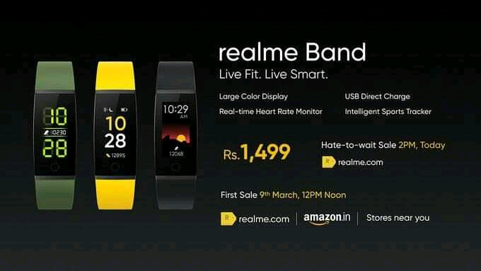 The Realme Band comes in Black, Green and Yellow colors, is priced at 1499 and available from 9th March on Amazon.in and hate to wait limited-time sale n Realme.com, March 5th from 2 to 4PM.